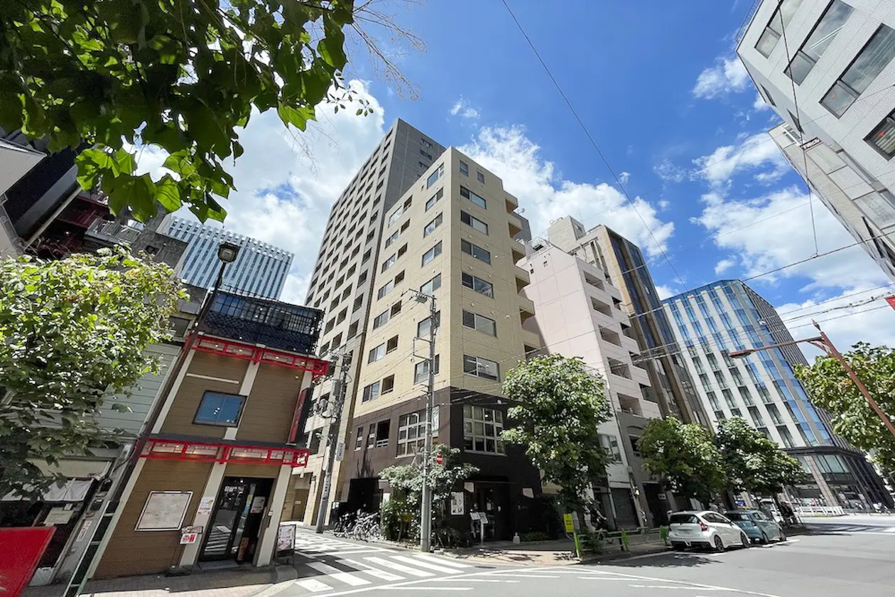 銀座徒歩5分の好立地にあるツートーンのすっきりとした外観。