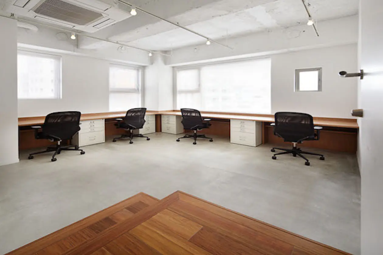 スケルトン感覚のラフな質感のサービスオフィス約21㎡のタイプと、家具付きタイプ23㎡の2タイプ。