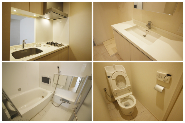 18インチのテレビがついたこだわりのバスルーム。ジャグジーで体をほぐしながら、ゆったりとしたバスタイムをお過ごし頂けるのではないでしょうか。水回りは全体的に清潔感のある広々としたつくりになっています。