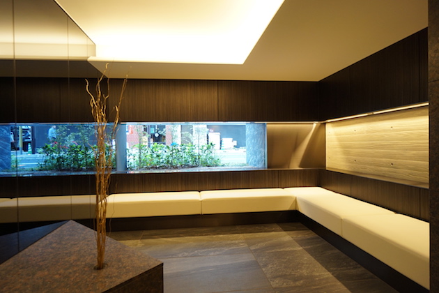 エントランスには来客時に使えそうなソファがあり、この物件のグレードの高さが伺えます。