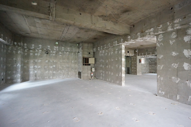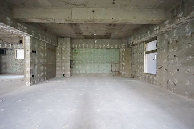 約70坪の室内は大きく3つの区画に別れています。GLボンドの跡がいたるところに残っています。