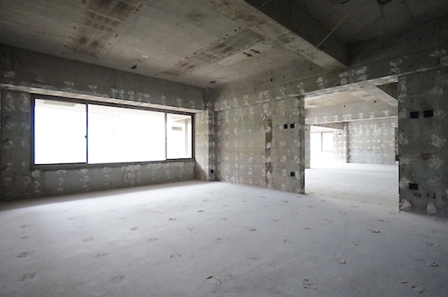 各部屋を区切るコンクリートの壁を抜くことができると、より大きな空間は作れるが、構造上難しそうな印象を受けました。