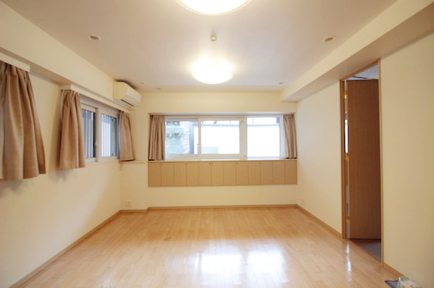落ち着いた色合いのフローリングに二面の窓が心地よいをもたらせてくれる。