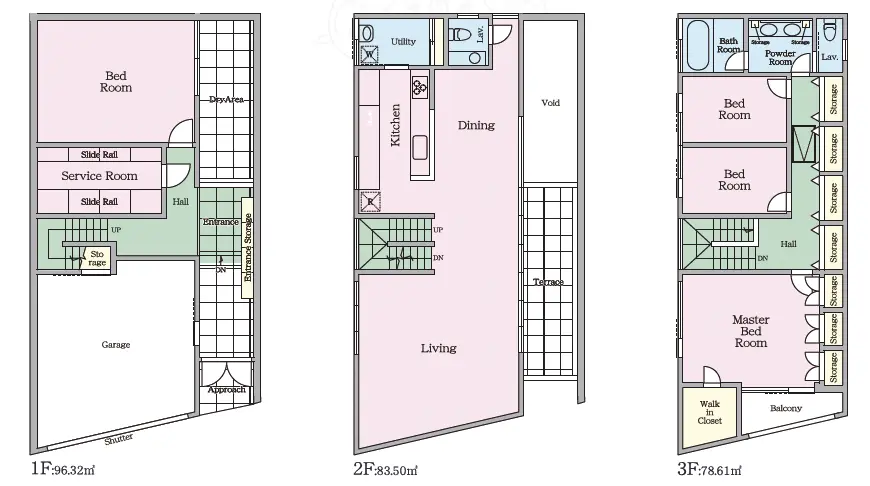 2階・3階に水まわりが設置されています。