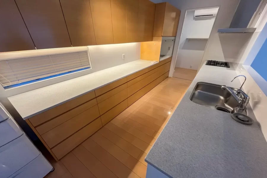 キッチンはオーダーメイドと既製品をバランスよく組み合わせています。