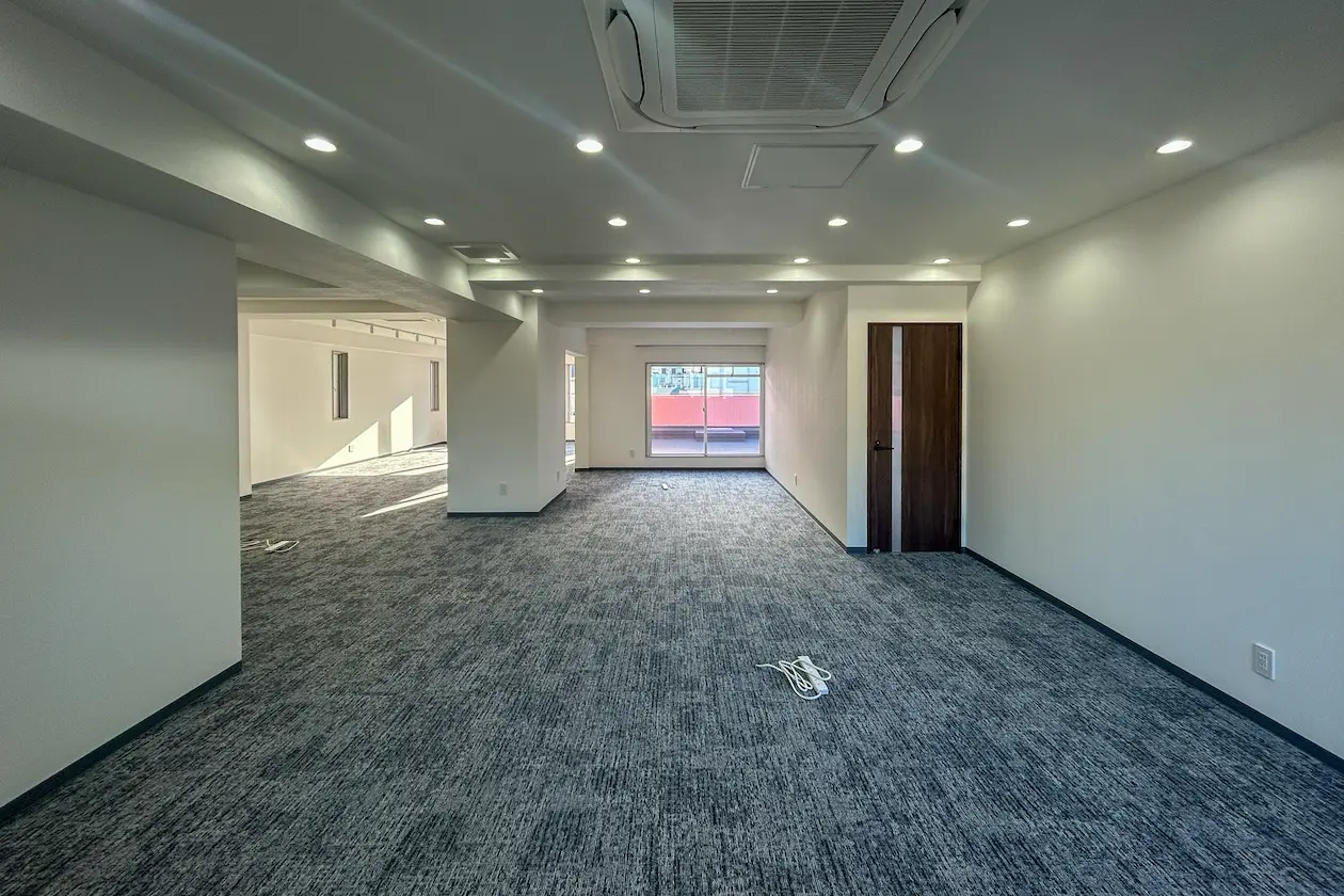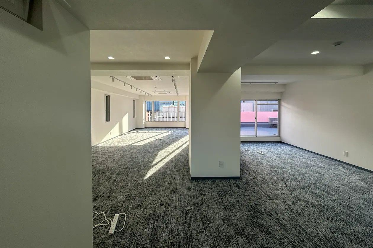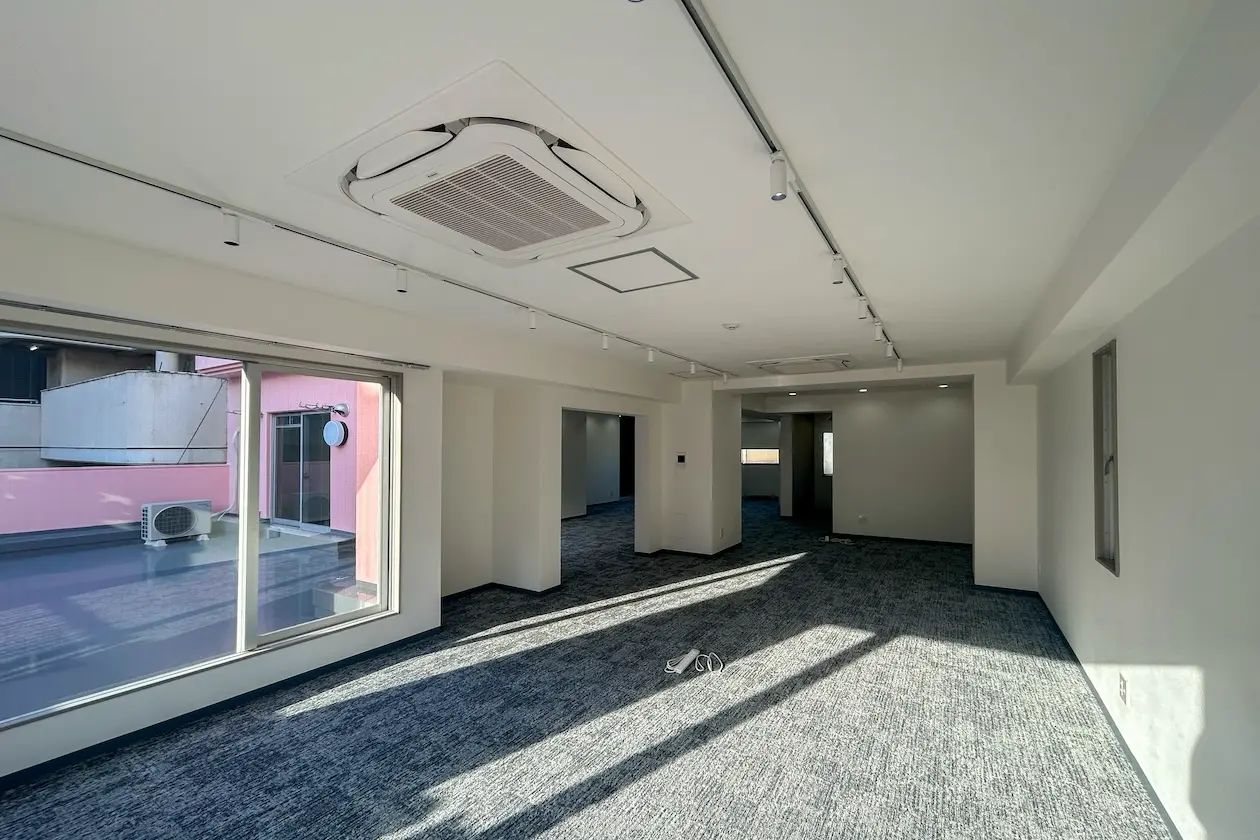 ワークスペースと屋外が緩やかにつながり、五反田エリアの空を感じながら働ける稀少な一室です。