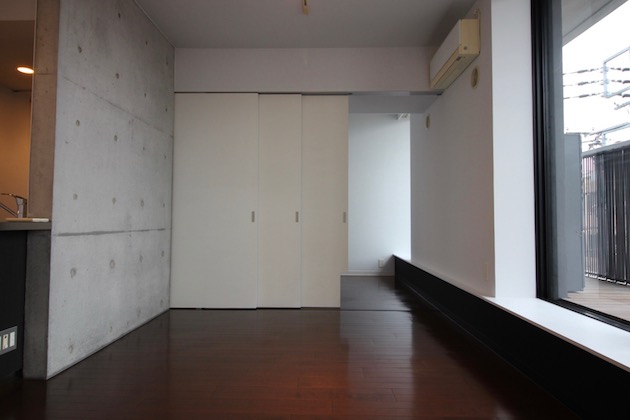 部屋内はRC打ち放しと白塗装壁のコンビネーション、事務所使用なら3~4人程度のスペースでしょうか。