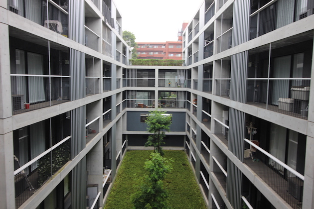 中庭を囲む回廊型の建物、部屋に入る前から洗練された印象を持ちます。