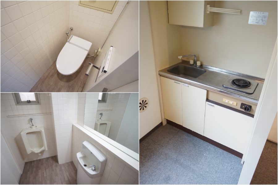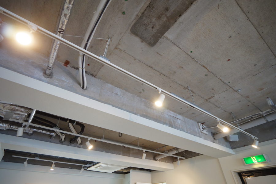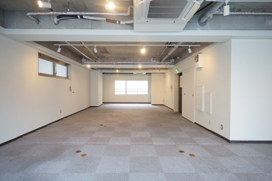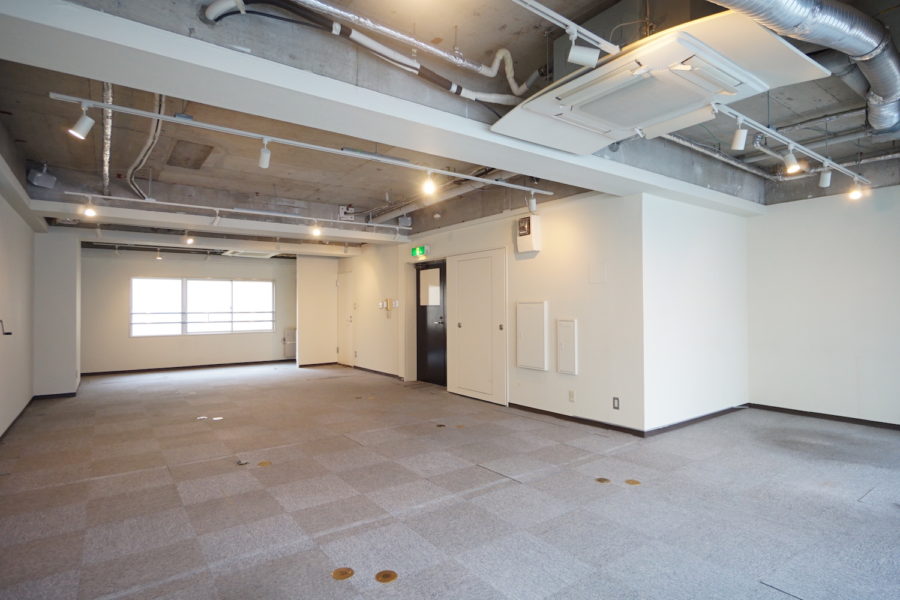天井は抜かれ、床はタイルカーペット、壁は壁紙の仕様。