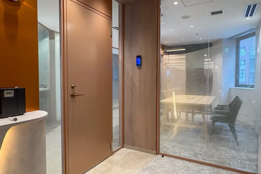 自動ロックの扉には顔認証のセキュリティが設置されており、カードキーを大量に手配する必要はありません。