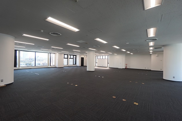 116坪の大規模なワンフロア。広さに加えて天高2.7Mもあるので開放的な空間に。OAフロアは必要に応じて貸主負担で設置が可能。