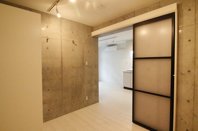 こちらのお部屋は玄関を入ってすぐ左手にあります。間切りを閉めると個室になるのでがらっと雰囲気が変わります。1人で作業に集中したいときやミーティングスペースとしても有効そうです。