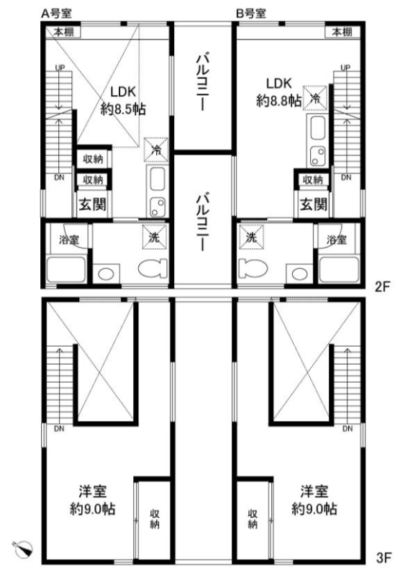1階は鉄筋コンクリート造。その上に左右木造のメゾネットが建っている珍しい形です。