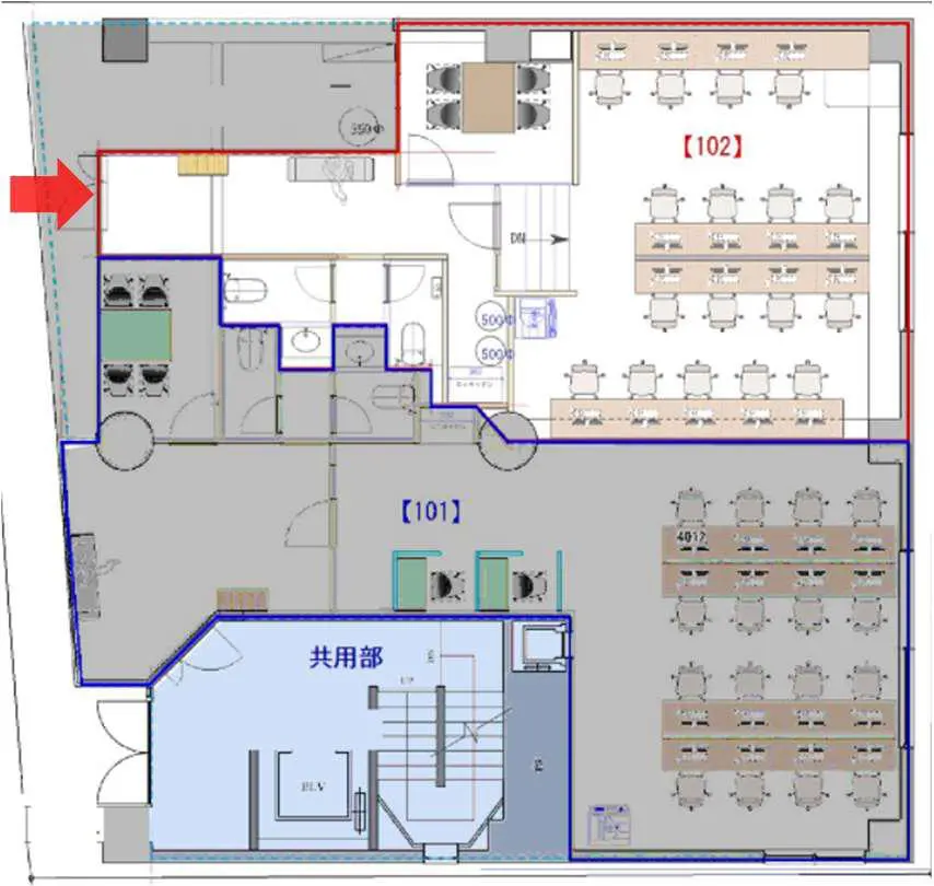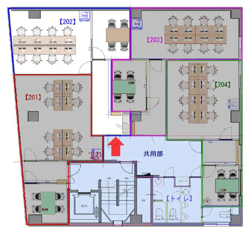 101を除き、すべての区画に会議室がついています。