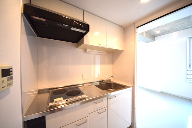 洗練とした空間を邪魔することなく、しっかりとしたキッチンが付いています。2口IHコンロ付きです。