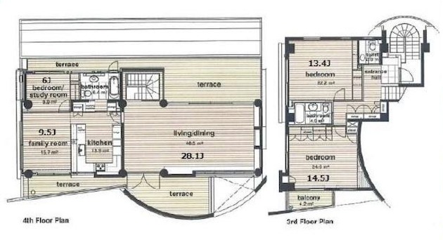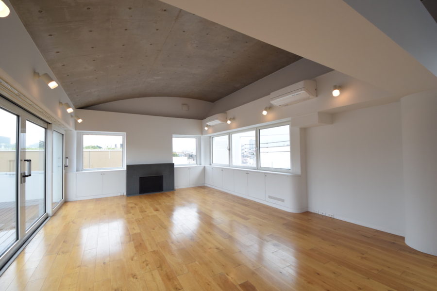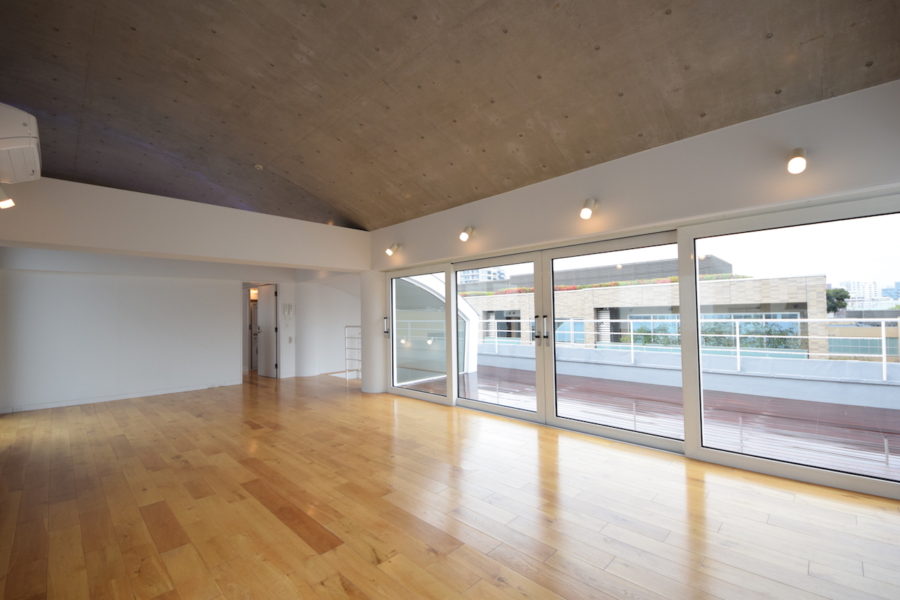 東京メトロ日比谷線「広尾駅」から10分、建築家デザインの屋上テラス付きの広々メゾネット物件のご紹介です。