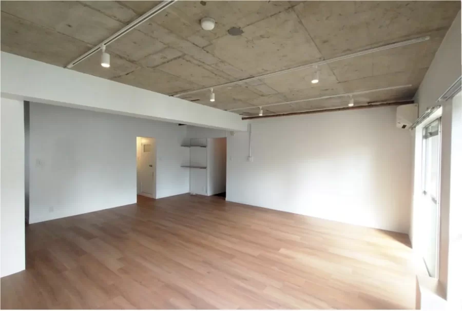 約39㎡の広めなワンルームでライティングレールもついていますので、作業スペースのレイアウトは自由自在。
