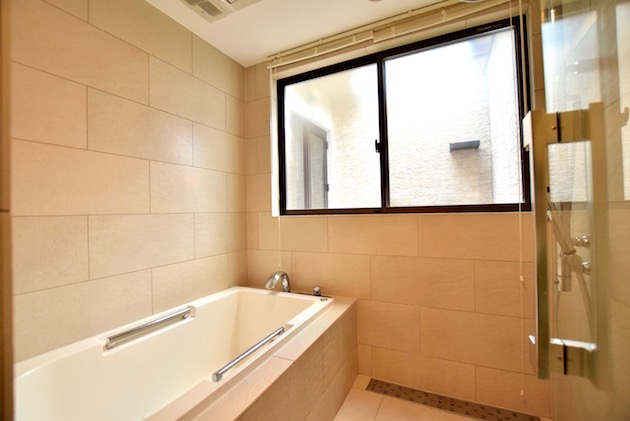 水回りはゆったりとした高級感ある作りです。B1階ですが、ドライエリアから自然光が入ります。