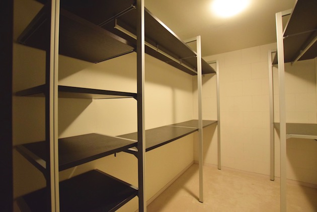 部屋の奥には棚を備えたウォークインクローゼット。衣類はもちろん、仕事関係のストレージにも使えそうです。