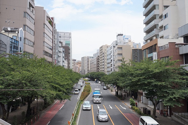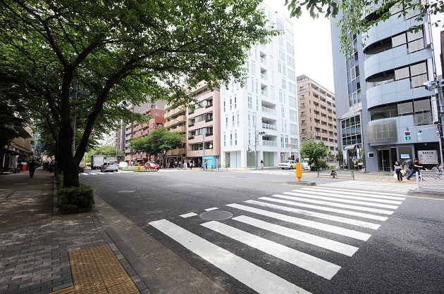 本物件は明治通りを直進したところに位置しています。都心にありながら緑豊かで、交通量は多いもののどこかゆったりと落ち着いた雰囲気が魅力。