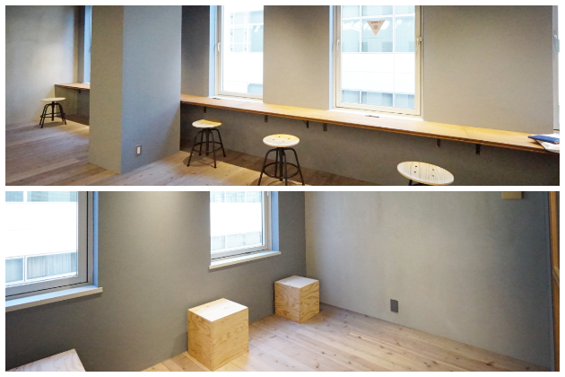 Room2。床には良質なカーペットが施され、天井高は3200mmと開放感と居心地の良さが光ります。室内にはテーブルとチェアが備え付けられているため、働く際のイメージがつかみやすそうです。