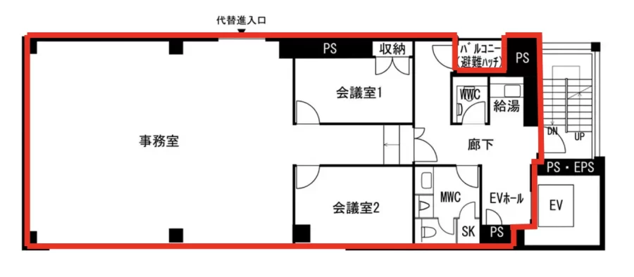 メインスペースの他にも会議室が2つあり、オフィスの設備としては充分なのではないでしょうか。
