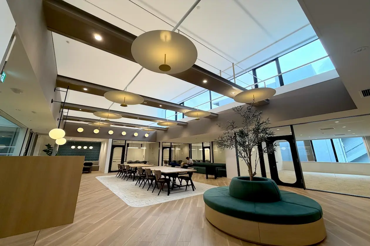 市ヶ谷駅徒歩5分、5部屋の会議室と天高5m超えのラウンジスペースを備える、165坪の大型フルセットアップが誕生。