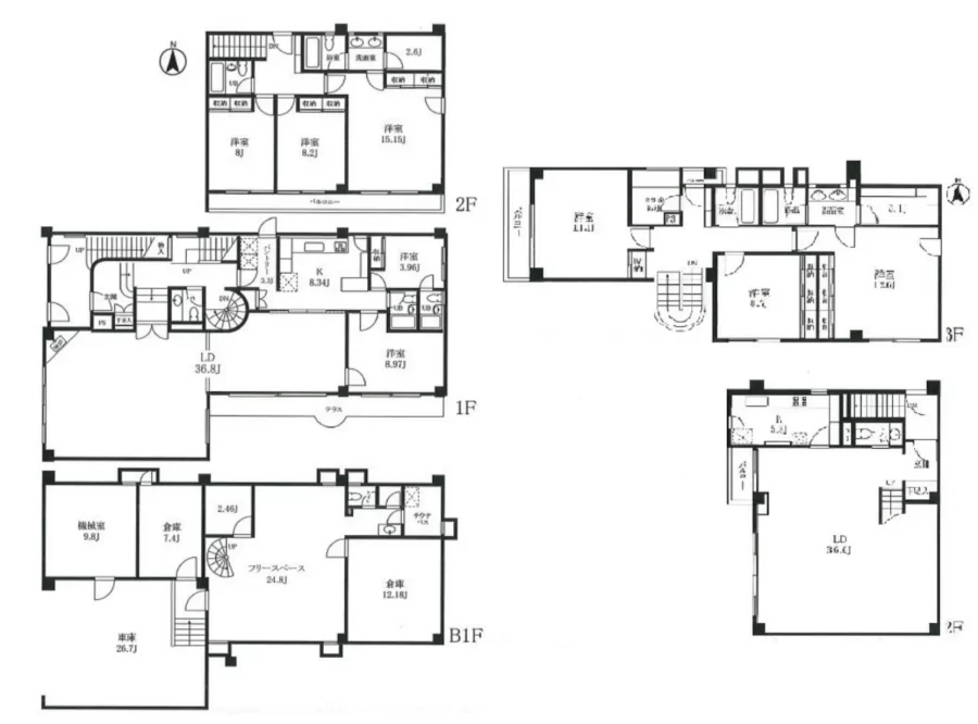 さらに、約12帖と7帖の倉庫を備え、在庫や備品をしっかりと収められる十分なストレージを確保。加えて、約26帖もの車庫は、業務用の車両や来客用の車をスマートに収容できる都心では希少な設備です。
