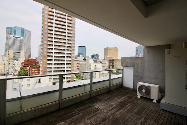 かなり広いバルコニーに出ることもできます。ビル群を眺めながら一息つくのもいいでしょう。