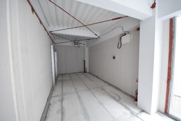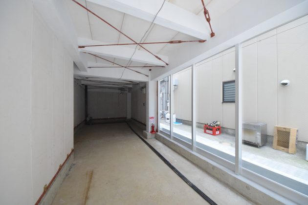 1階は約40㎡(12.3坪)の区画が2つ。小道に位置するので小さなカフェやショップのイメージでしょうか。2面採光が取れる部屋もあり室内の明るさは問題なさそうです。