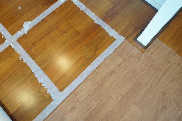 床は前入居者によるマットが敷かれていますが、本来は茶系の高級感のあるフローリングです。