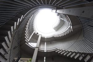 建物内に入るとエントランスからダイナミックな螺旋階段と開放感ある吹き抜けに思わず目を奪われます。