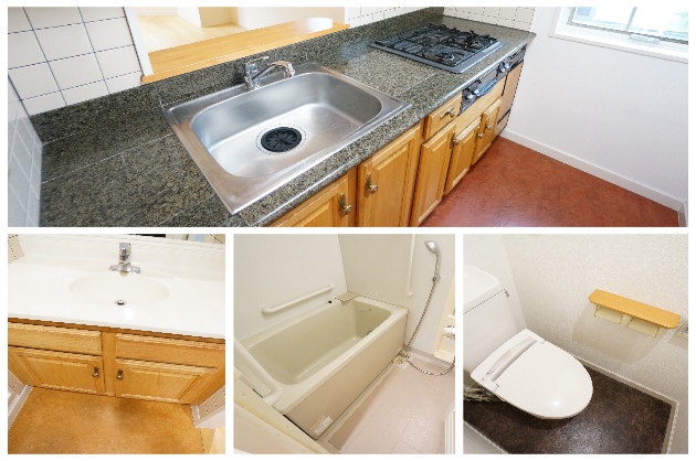 キッチンや洗面台には木製の建具が使われており、建物の外観とマッチした安っぽくはない雰囲気。