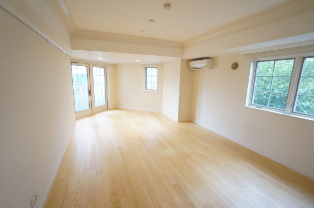 室内は2LDK。こちらは一番広いリビング部分。22畳の広さがあり、開口部も3箇所あるので明るさもしっかり確保できております。