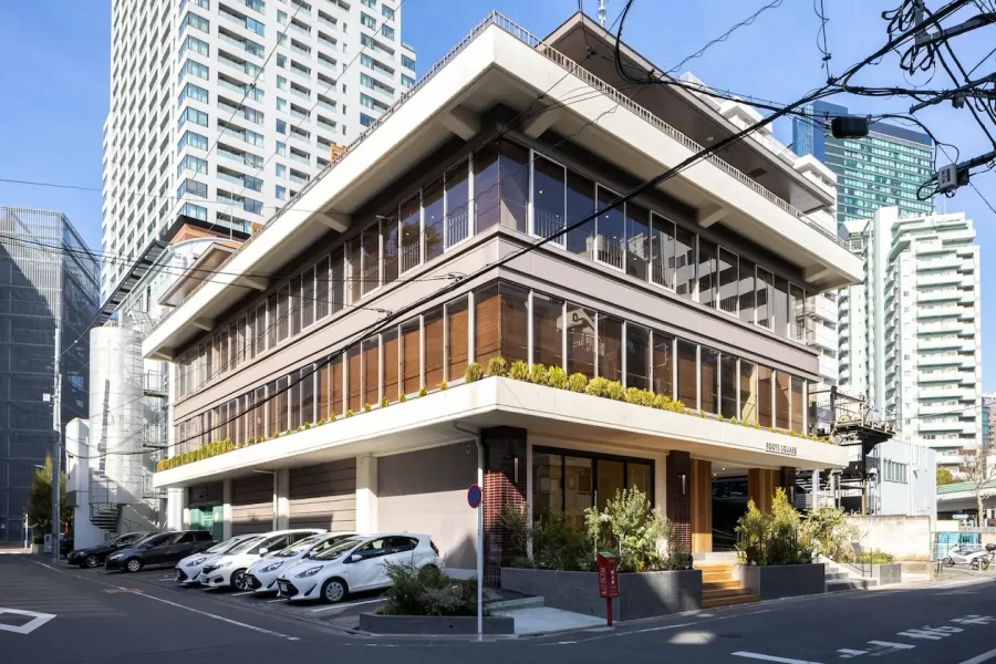 元々は漬物屋さんの本社ビルという出自もユニークかつ意外なモダニズム建築の外観。