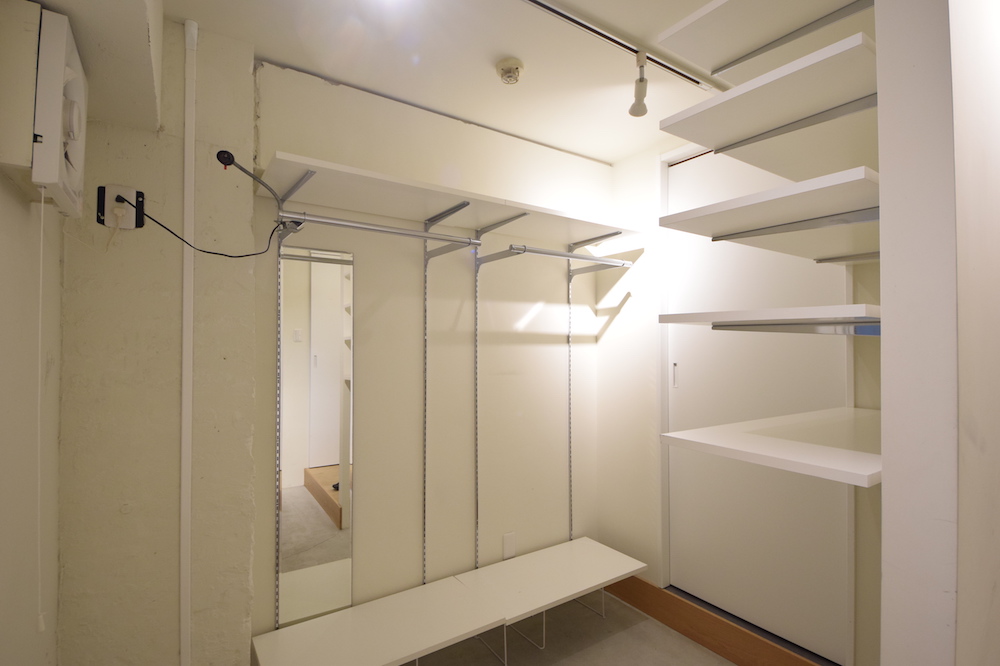 玄関を入ると写真のような充実したウォークインクローゼットとシューズクロークがあります。