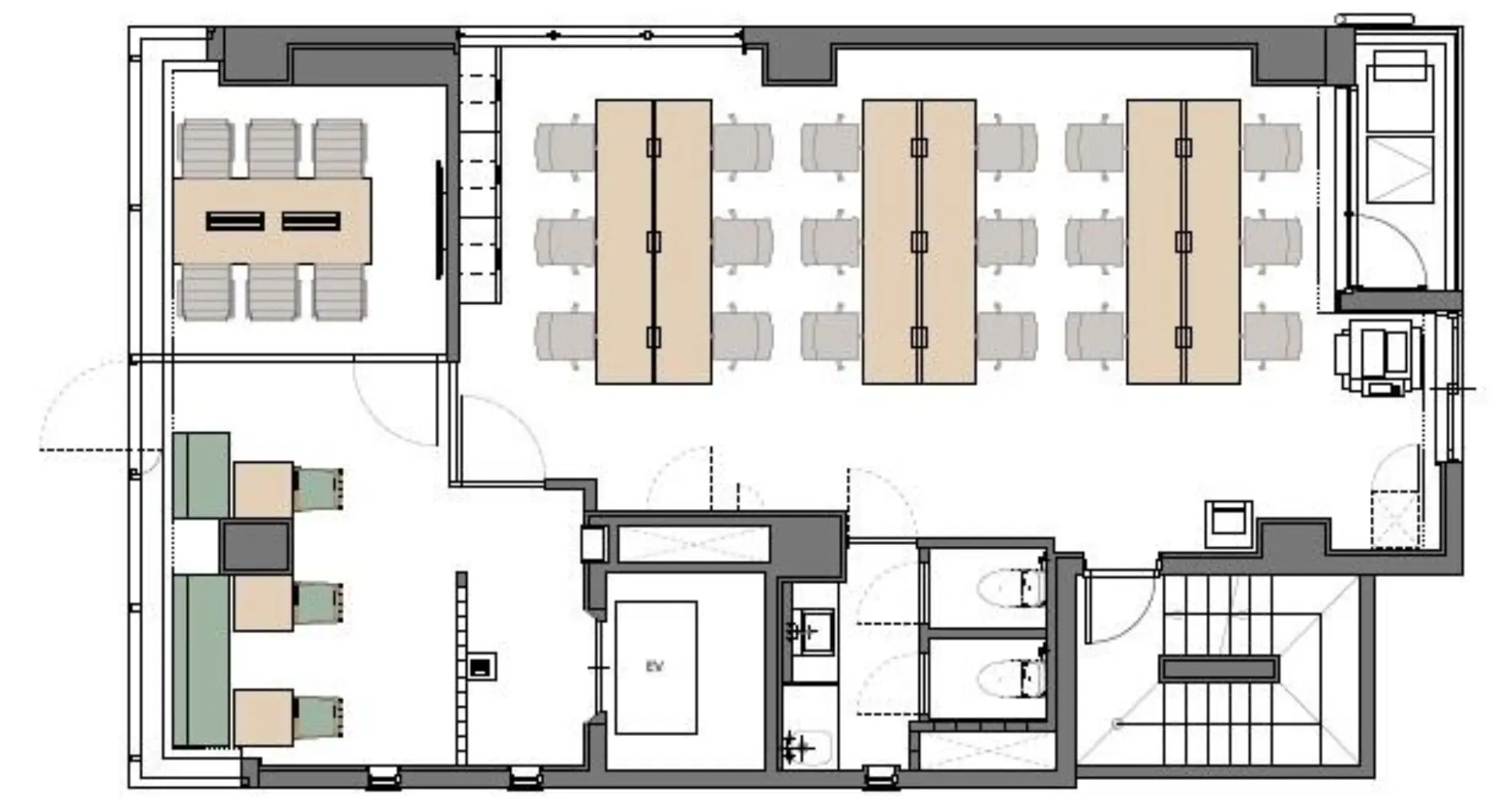 15名〜20名程度でもゆったりと使えるサイズ感があり、スタートアップやプロジェクトチームの拠点にもフィットしそうです。