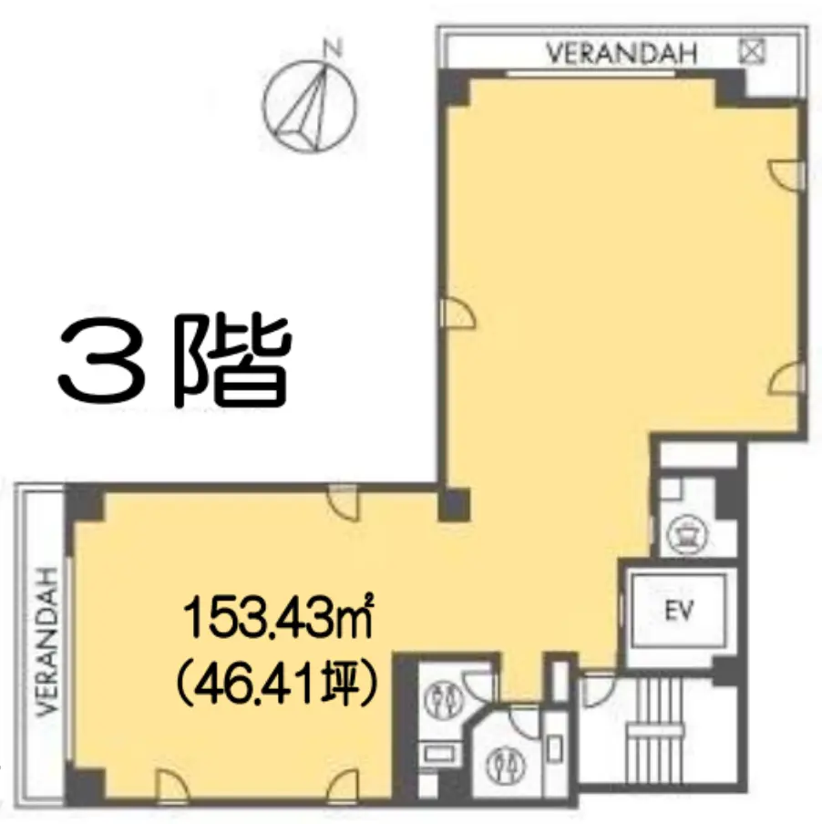 エレベーターを降りたところからL字型に別れており使いやすい間取り、スペースを2つ区切れるのは魅力的に映るのでは。
