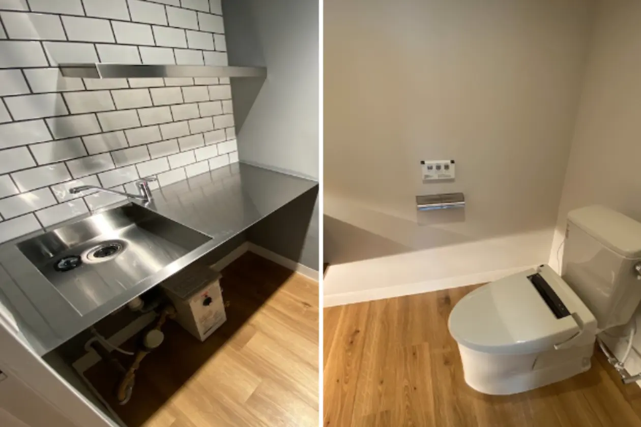 水回りもリノベーションされており快適に利用可能、トイレも男女別に対応できる2個付き。