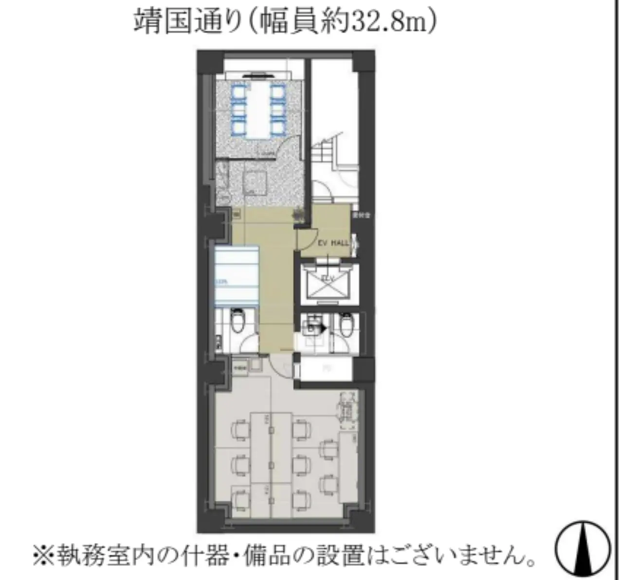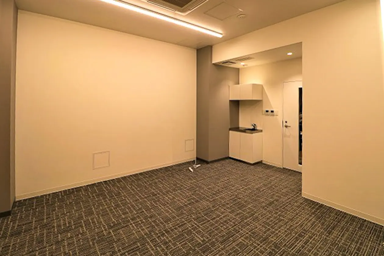 室内写真はありませんが、室内には6名用の会議室が設置されているため、日常のミーティングから来客対応までワンフロアで完結できる点も魅力です。