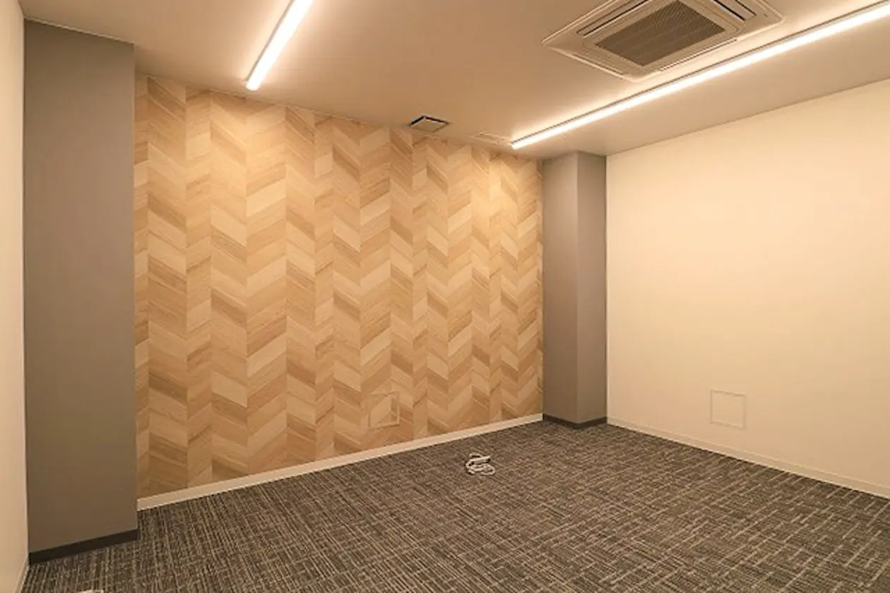 6〜8名程度のチーム利用にちょうどよいサイズ感で、デスクを並べたレイアウトもすっきり収まります。