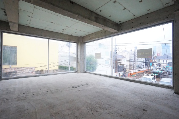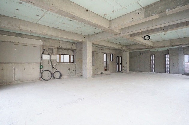 室内は完全スケルトン状態。2面採光により、非常に明るく開放感溢れる空間がつくられています。