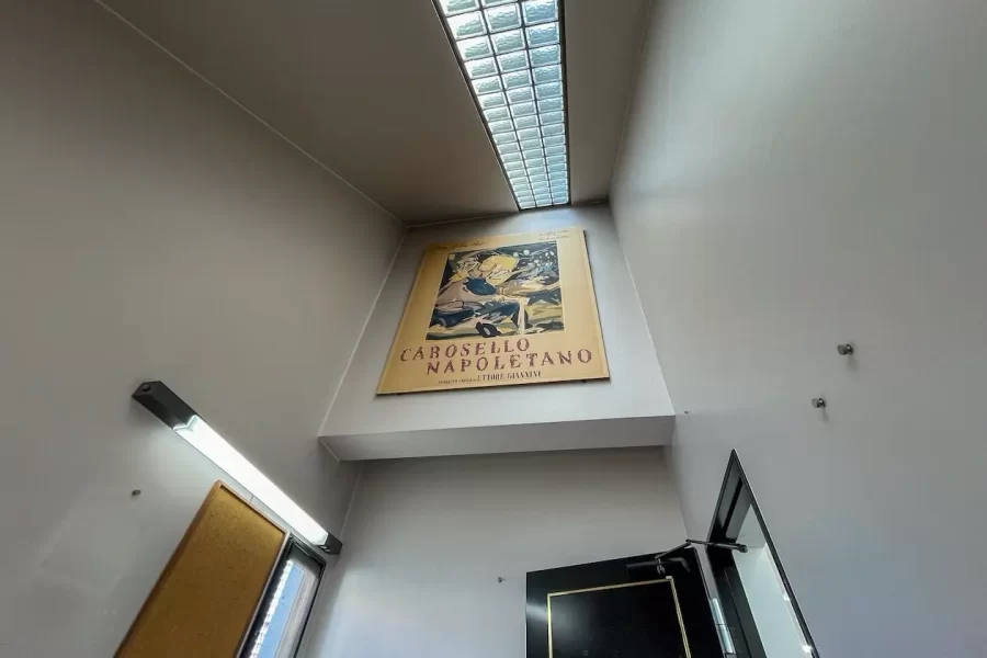 1階部分には少々天井低めのスペースがあり、階段を登って2階へ。