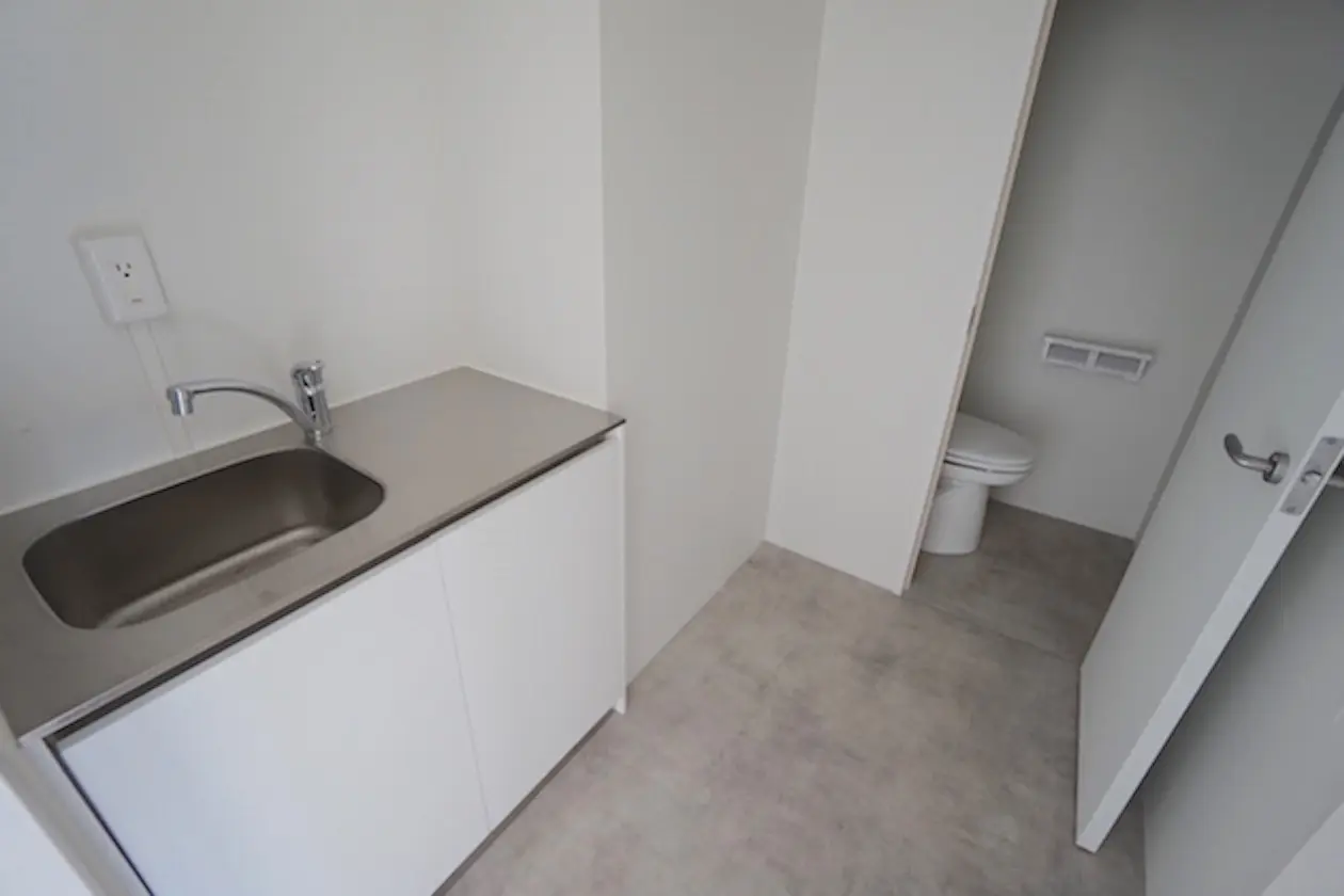 台所だったスペースはシンプルなミニキッチンとトイレへ変更されており、コンパクトにまとめられています。