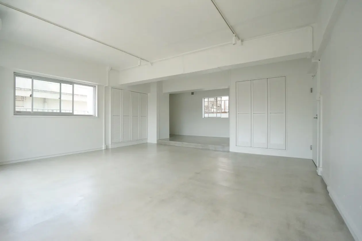 こちらは201号室。元々和室仕様だった内装は壁天井は白塗装を施した、シンプルな空間に。