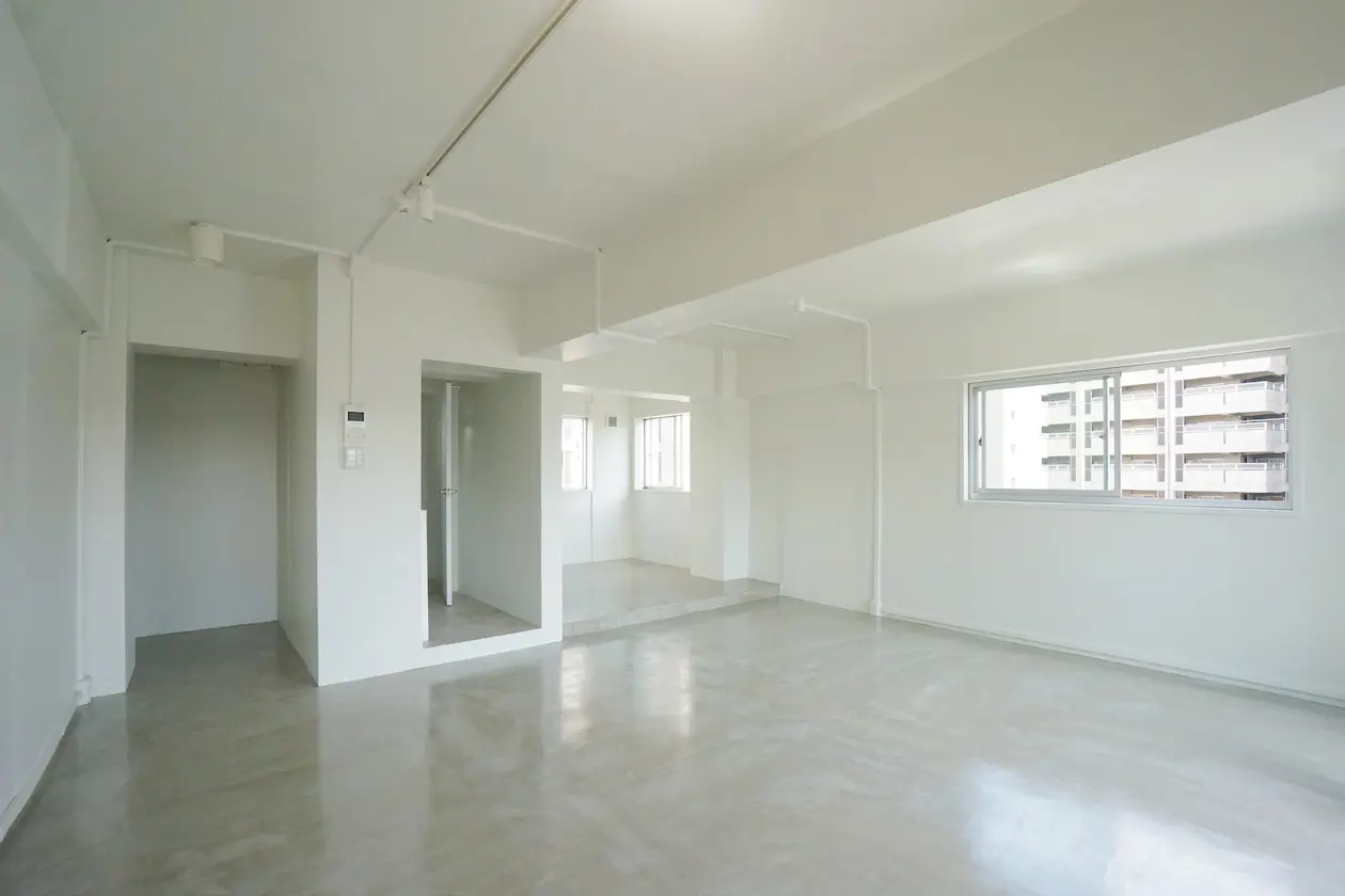 202号室は約40㎡のワンルーム空間。こちらもホワイトで統一されたクリーンな空間です。