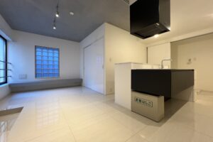 冷蔵庫や洗濯機は扉で隠すことができ、無駄なものがなくスッキリとした室内になっています。