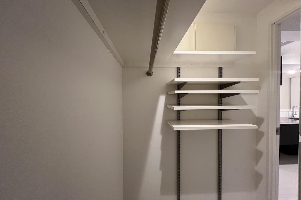 ミニマルでシンプルな内装ではあるものの、ちょっとしたウォークインクローゼットがございます。