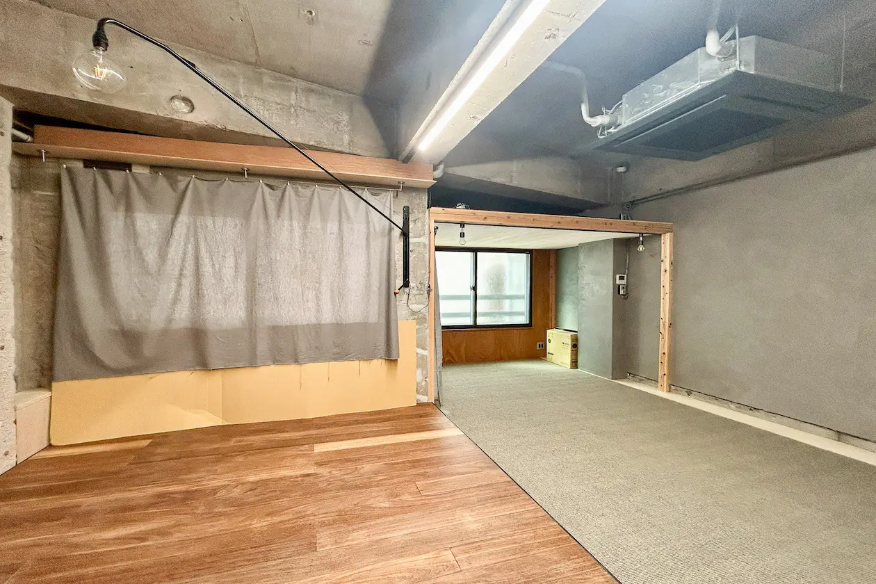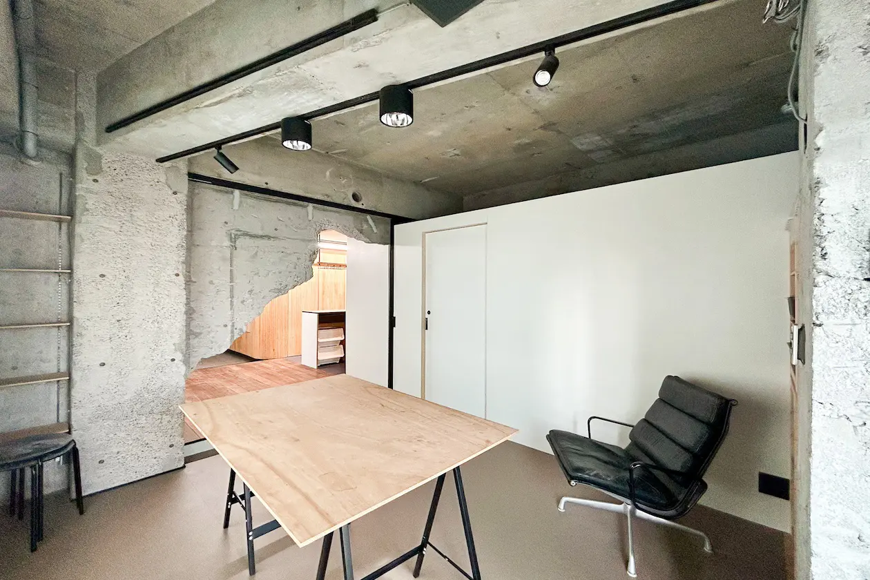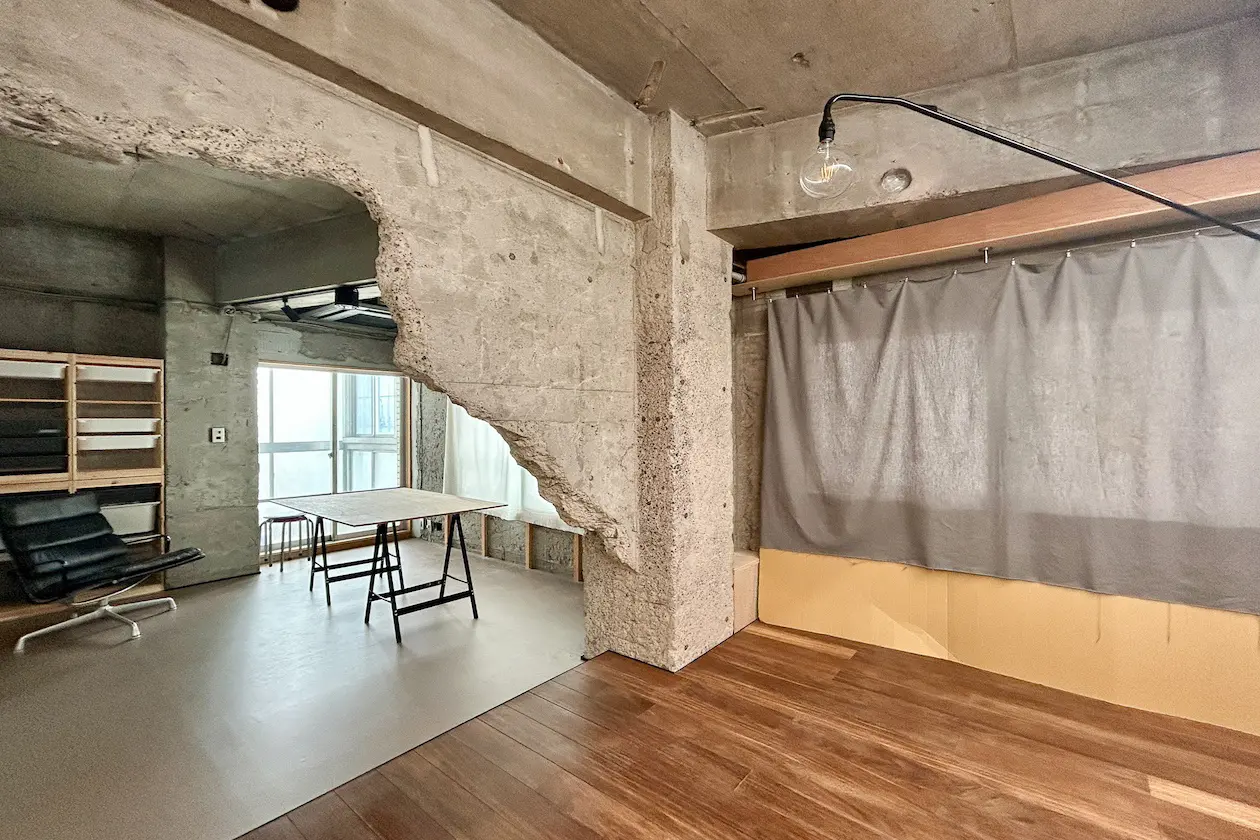 原宿、コンクリートと木の質感が織りなす、秘密基地のようなデザイン空間