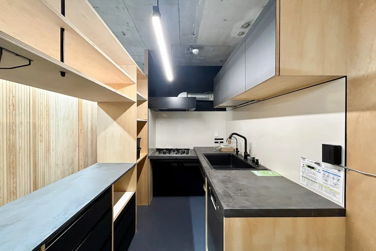 住居としての機能はもちろん、来客時のドリンク提供や、スタッフのランチ利用にも対応でき、オフィスとしての実用性も兼ね備えています。